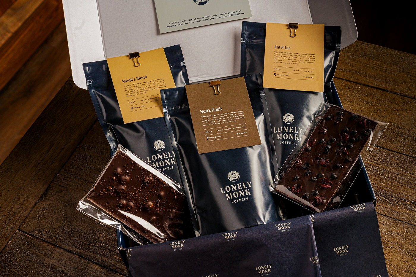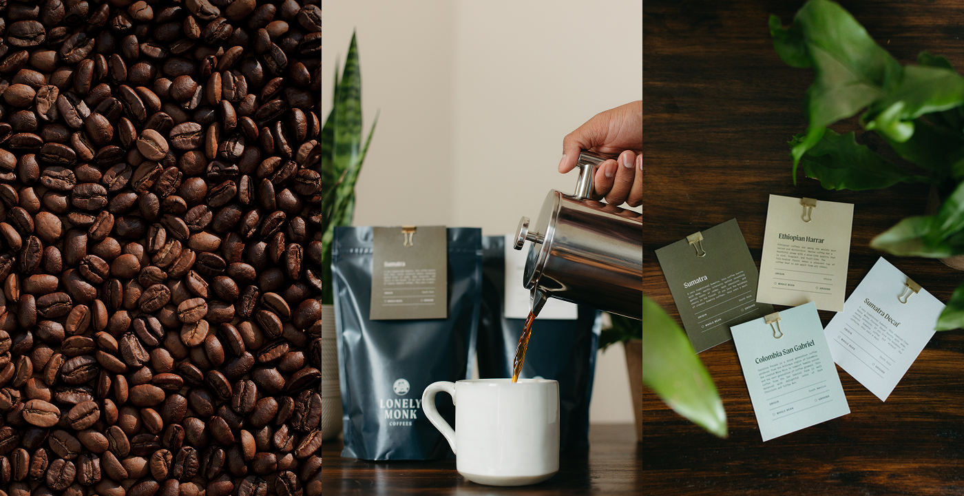 We worked with Lonely Monk Coffees, a small-batch roastery tucked away in Lemoyne, PA, to evolve their visual identity. With the roastery recently transitioning to new ownership, our goal was to honour its local legacy while building out a new brand identity that allowed them to reach a new audience and raise their pricing.